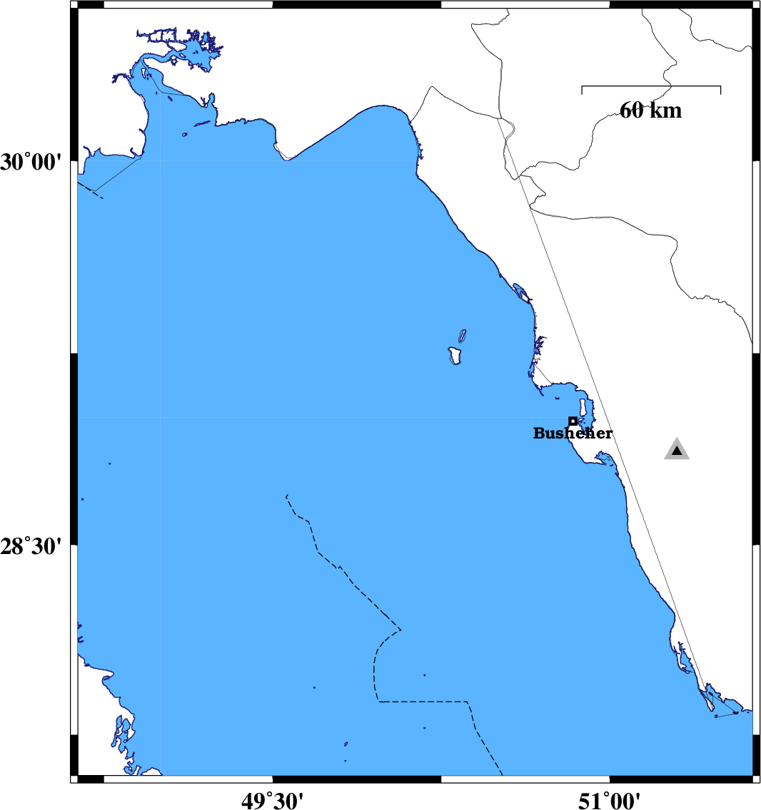 | 2023/01/04 | 15:22:28.9 | 18:52:28.9 | 29.089 | 50.134 | 12 | ML:3.4 | Persian Gulf, 69 km North-West of Busheher |