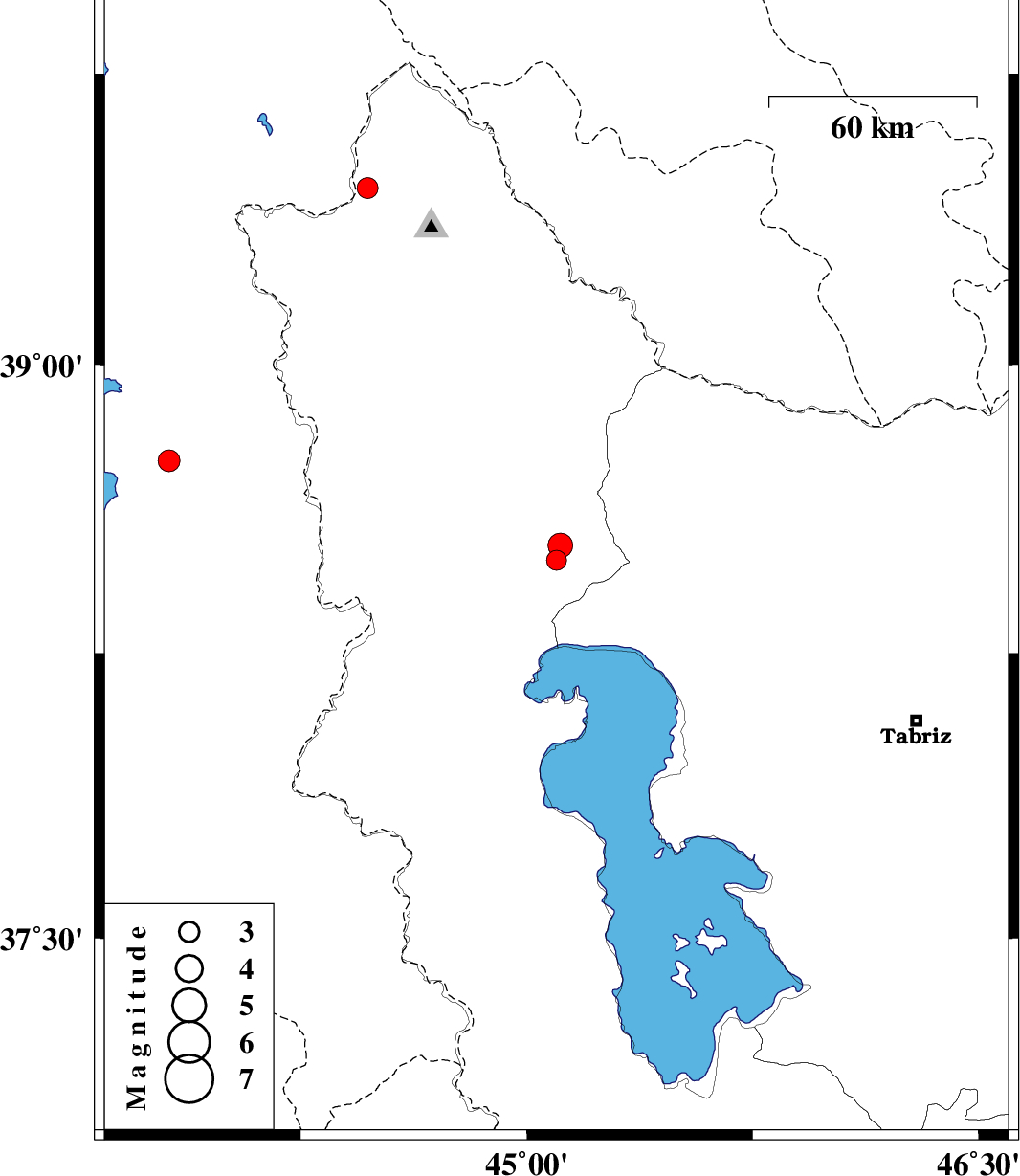 | 2022/12/30 | 15:55:16.5 | 19:25:16.5 | 39.456 | 44.472 | 7 | ML:3.1 | Azarbaijan Gharbi Province, 19 km North of Maku | ||