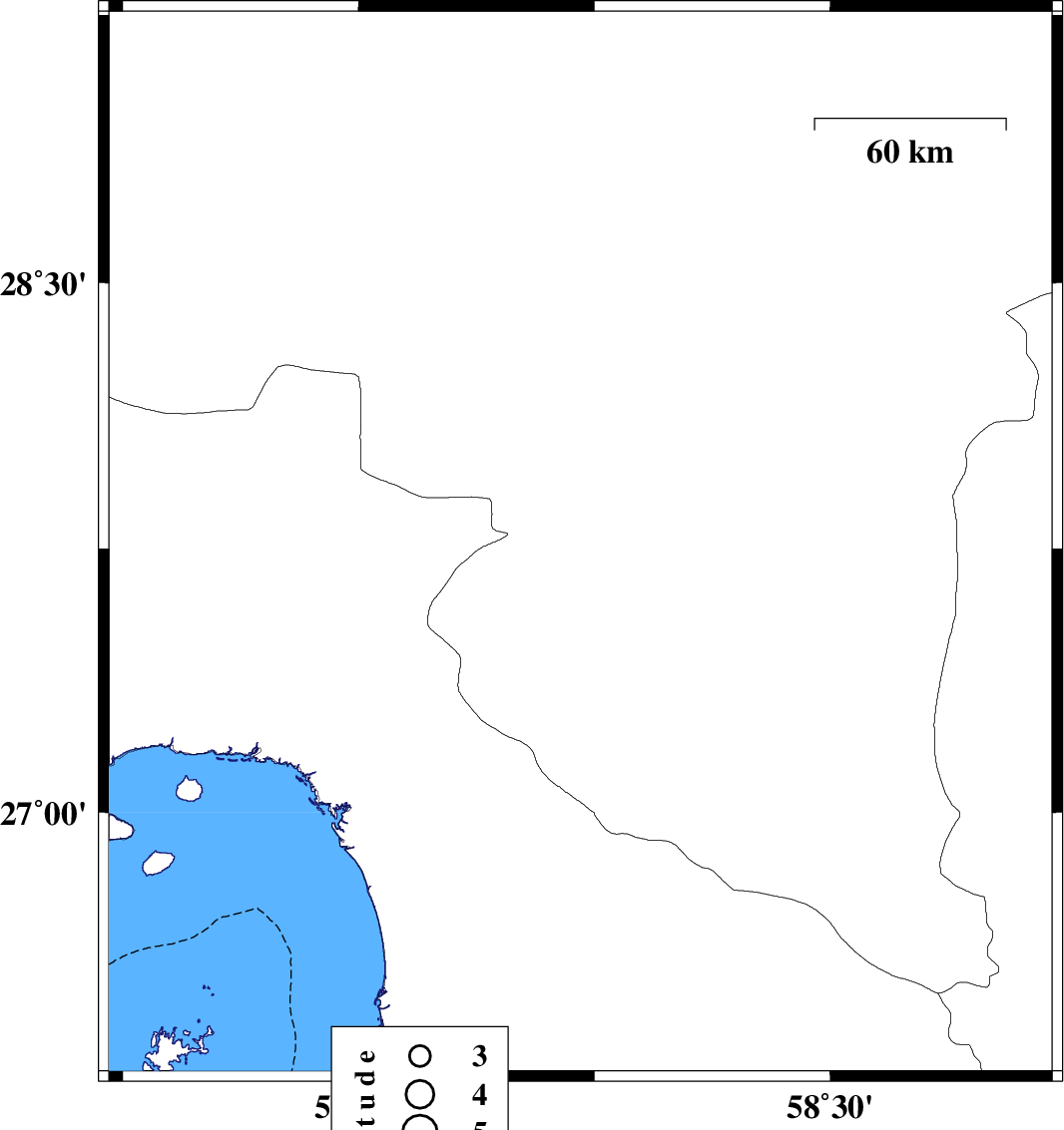 | 2023/01/25 | 17:19:00.8 | 20:49:00.8 | 27.761 | 57.706 | 12 | ML:3.3 | Kerman Province, 21 km South of Kahnuj |