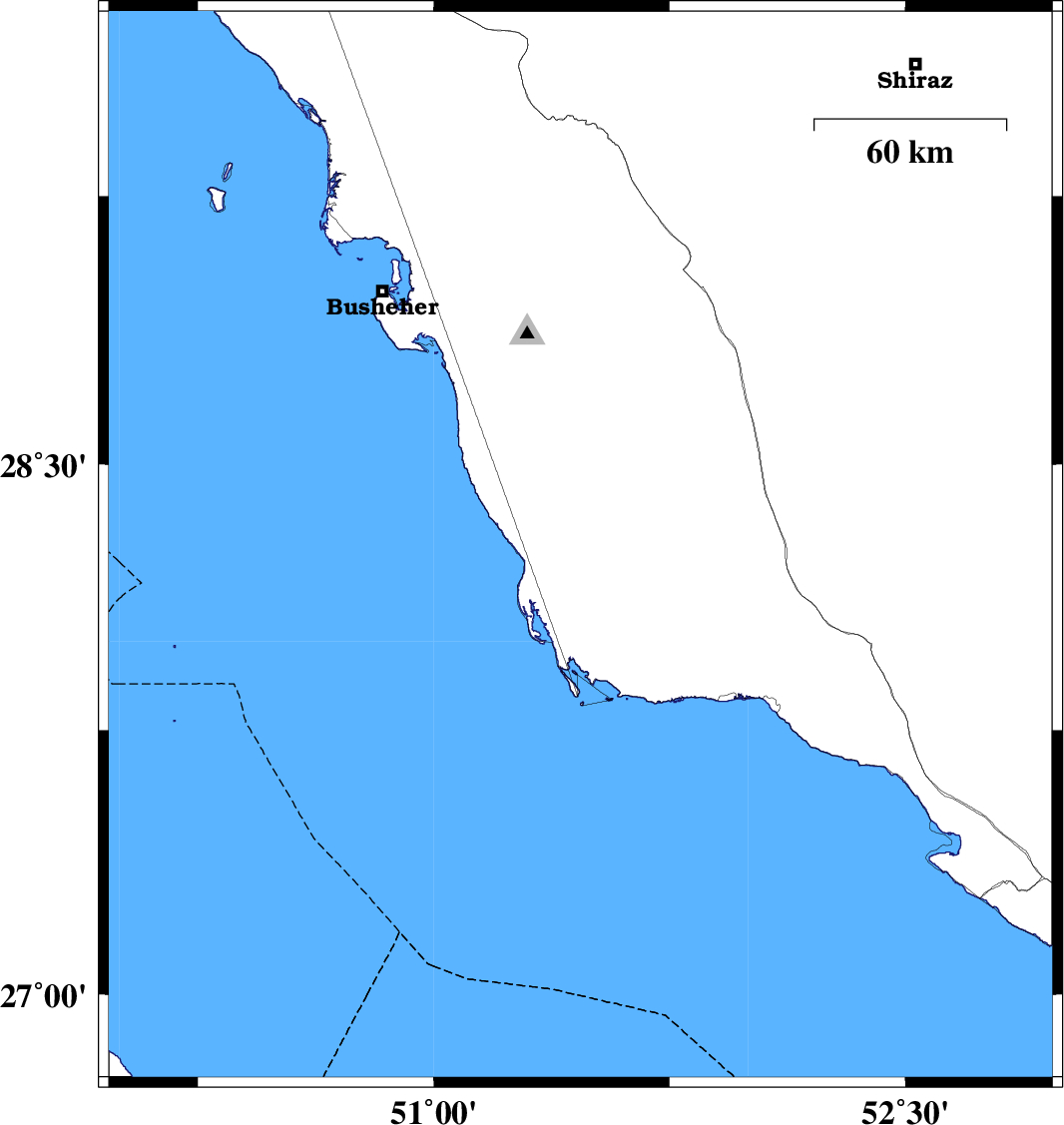 | 2023/01/27 | 06:19:30.8 | 09:49:30.8 | 29.284 | 51.197 | 16 | ML:3.6 | Bushehr Province, 3 km of Borazjan |