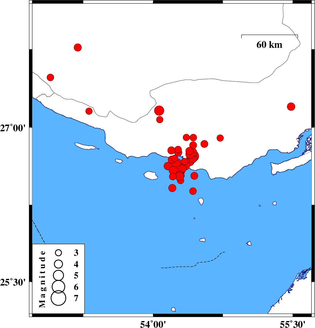 2022/06/15 19:53:54.8 00:23:54.8 26.68954.20212 ML:3.6 Persian Gulf, 59 km South-West of Bastak