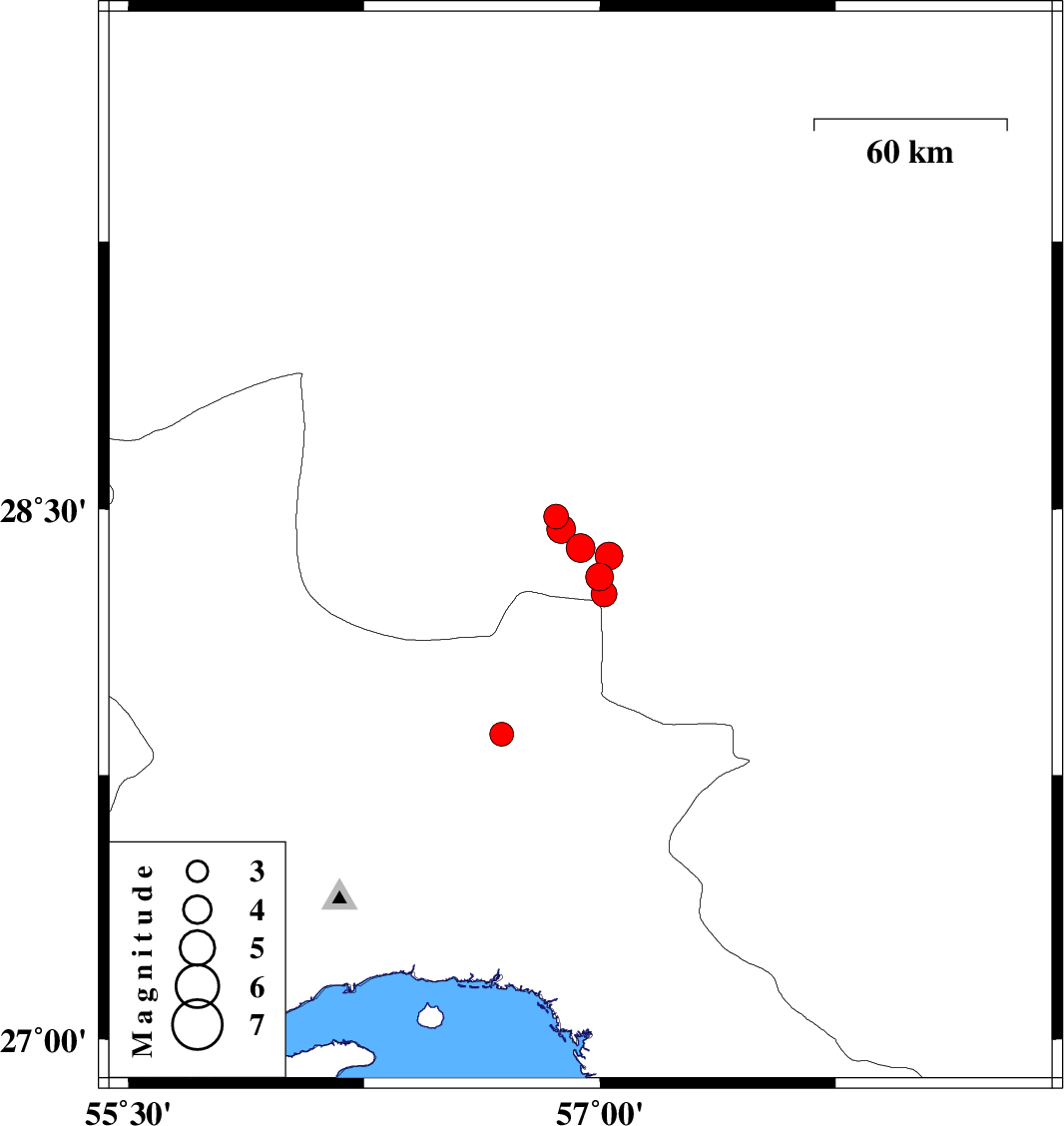 | 2023/02/09 | 13:07:51.5 | 16:37:51.5 | 27.866 | 56.688 | 7 | ML:3.4 | Hormozgan Province, 73 km North-West of Dehbarez | ||
