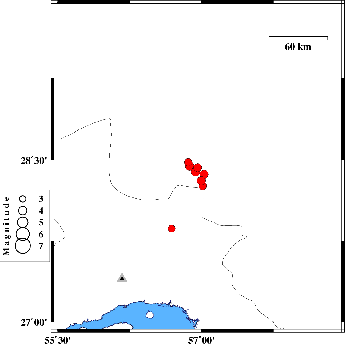 | 2023/02/09 | 13:07:51.5 | 16:37:51.5 | 27.866 | 56.688 | 7 | ML:3.4 | Hormozgan Province, 73 km North-West of Dehbarez | ||