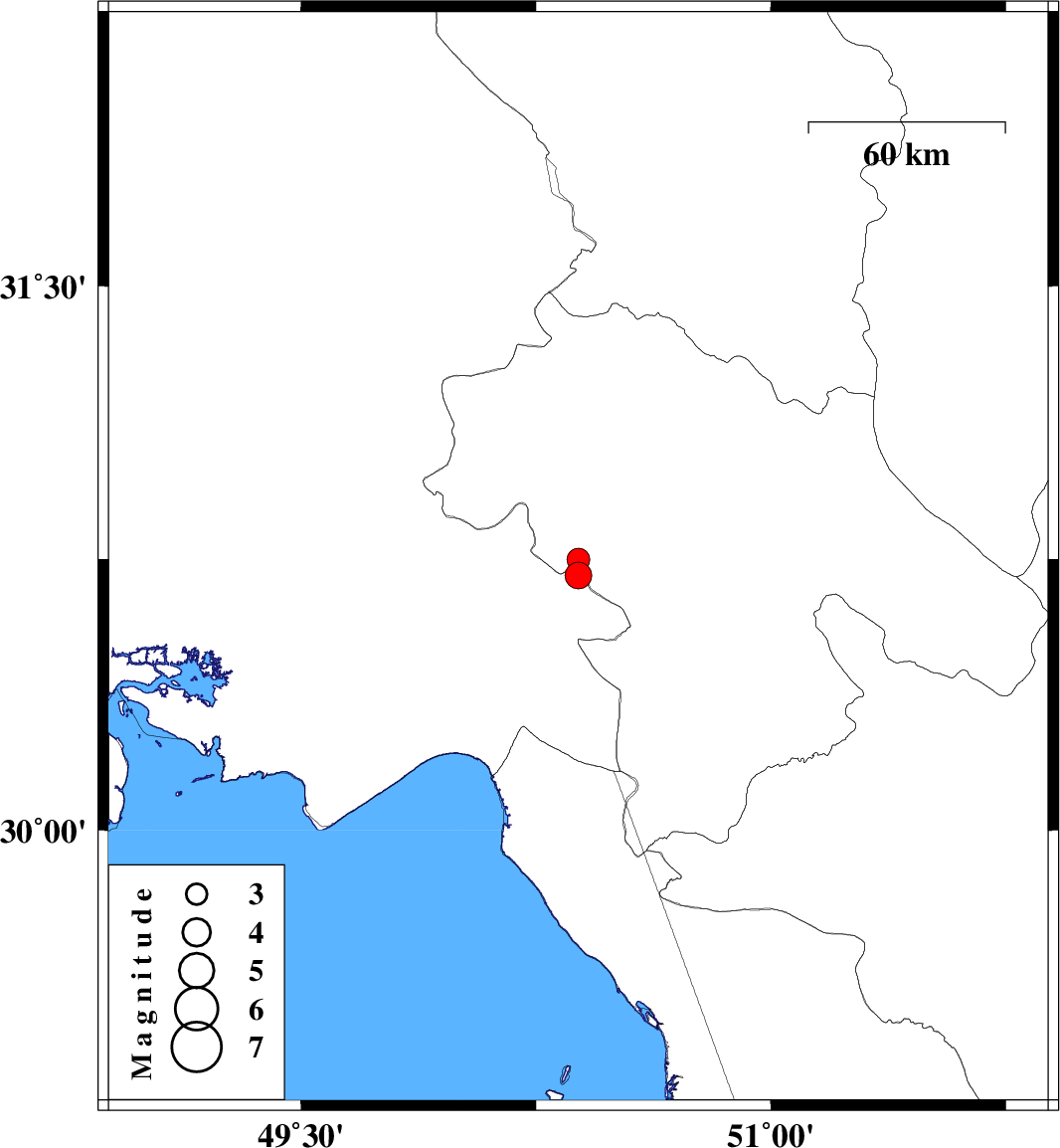 | 2023/02/21 | 01:29:17.4 | 04:59:17.4 | 30.705 | 50.385 | 8 | ML:3.8 | Khoozestan Province, 18 km North-East of Behbahan | ||