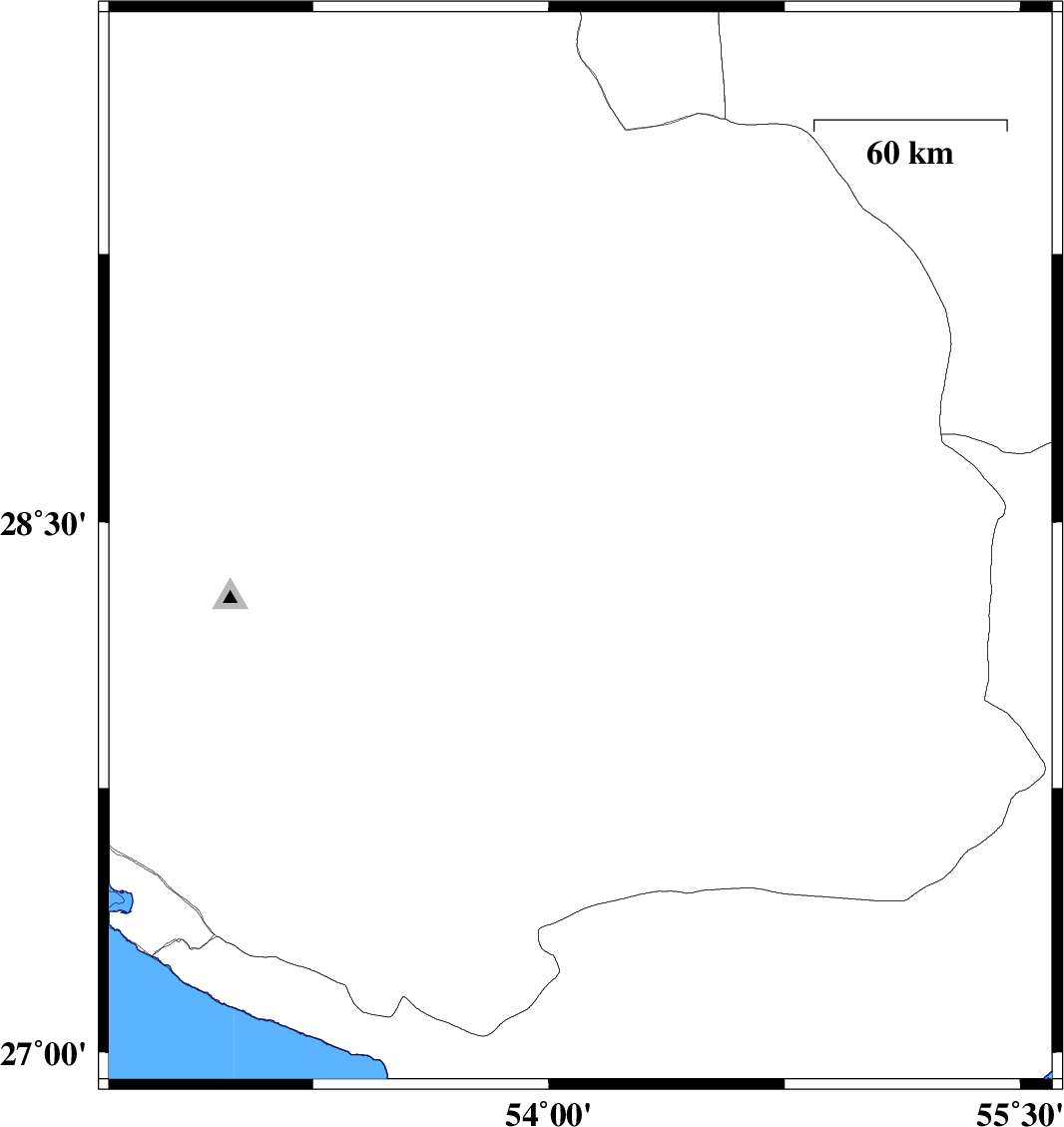 | 2022/05/24 | 13:35:02.2 | 18:05:02.2 | 27.767 | 53.191 | 15 | ML:3.6 | Fars Province, 48 km North of Lamerd | ||