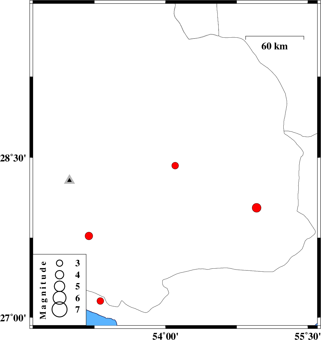 | 2022/05/04 | 06:34:47.4 | 11:04:47.4 | 28.031 | 54.96 | 19 | ML:4.2 | Fars Province, 73 km North-East of Lar |