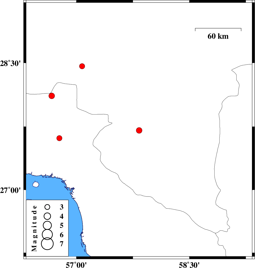 | 2023/03/03 | 02:50:02.2 | 06:20:02.2 | 27.613 | 56.774 | 21 | ML:3.3 | Hormozgan Province, 50 km North-West of Dehbarez | ||