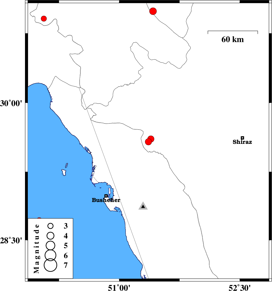 | 2023/03/06 | 15:07:48.4 | 18:37:48.4 | 28.716 | 50.005 | 12 | ML:3.2 | Persian Gulf, 86 km South-West of Busheher | ||