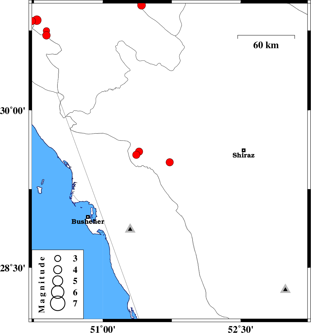 | 2023/02/21 | 01:29:17.4 | 04:59:17.4 | 30.705 | 50.385 | 8 | ML:3.8 | Khoozestan Province, 18 km North-East of Behbahan | ||