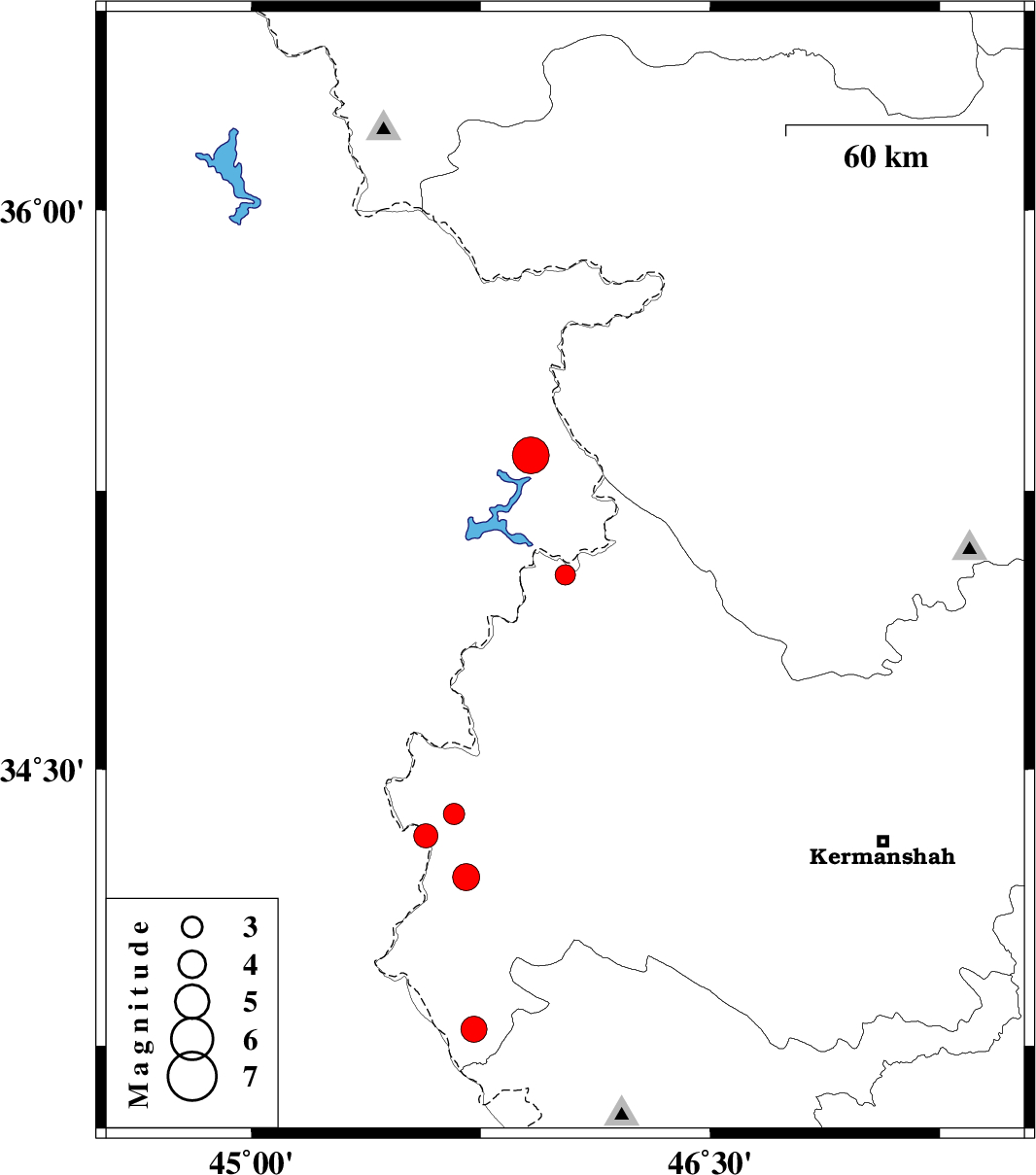 | 2023/03/04 | 05:46:01.7 | 09:16:01.7 | 34.32 | 45.57 | 12 | ML:3.5 | Kermanshah Province, 22 km South of Qasr-E-Shirin |