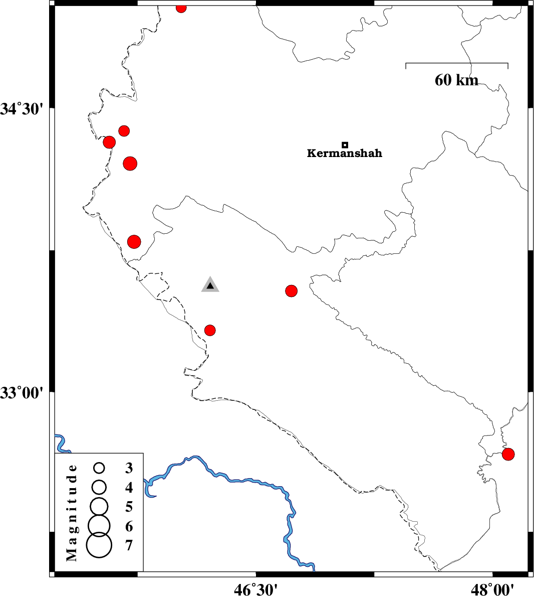 | 2023/03/04 | 05:46:01.7 | 09:16:01.7 | 34.32 | 45.57 | 12 | ML:3.5 | Kermanshah Province, 22 km South of Qasr-E-Shirin | ||