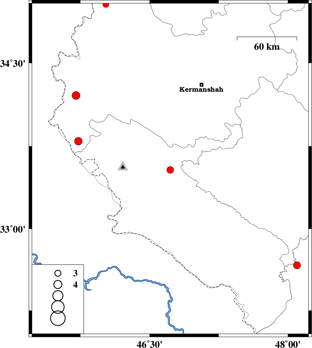 | 2023/03/12 | 06:35:33.9 | 10:05:33.9 | 34.208 | 45.702 | 12 | ML:3.9 | Kermanshah Province, 21 km -West of Gilan-E-Gharb |
