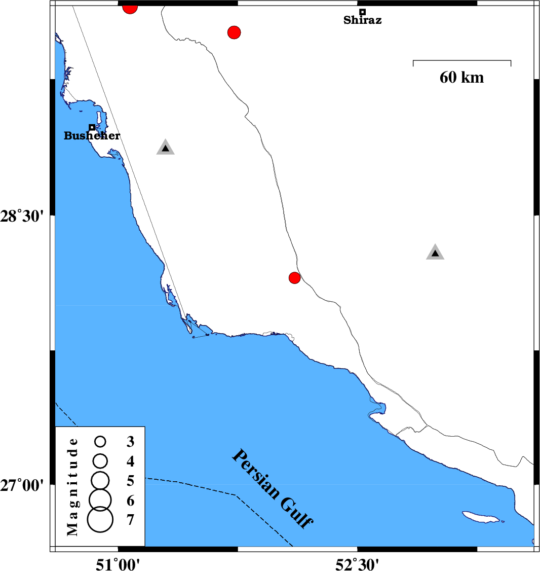 | 2023/03/19 | 08:28:43.4 | 11:58:43.4 | 29.65 | 51.075 | 10 | ML:4.3 | Bushehr Province, 45 km North-West of Borazjan | ||