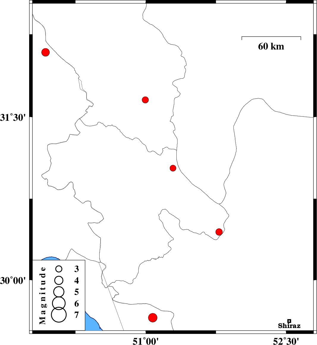 | 2023/03/19 | 08:28:43.4 | 11:58:43.4 | 29.65 | 51.075 | 10 | ML:4.3 | Bushehr Province, 45 km North-West of Borazjan |