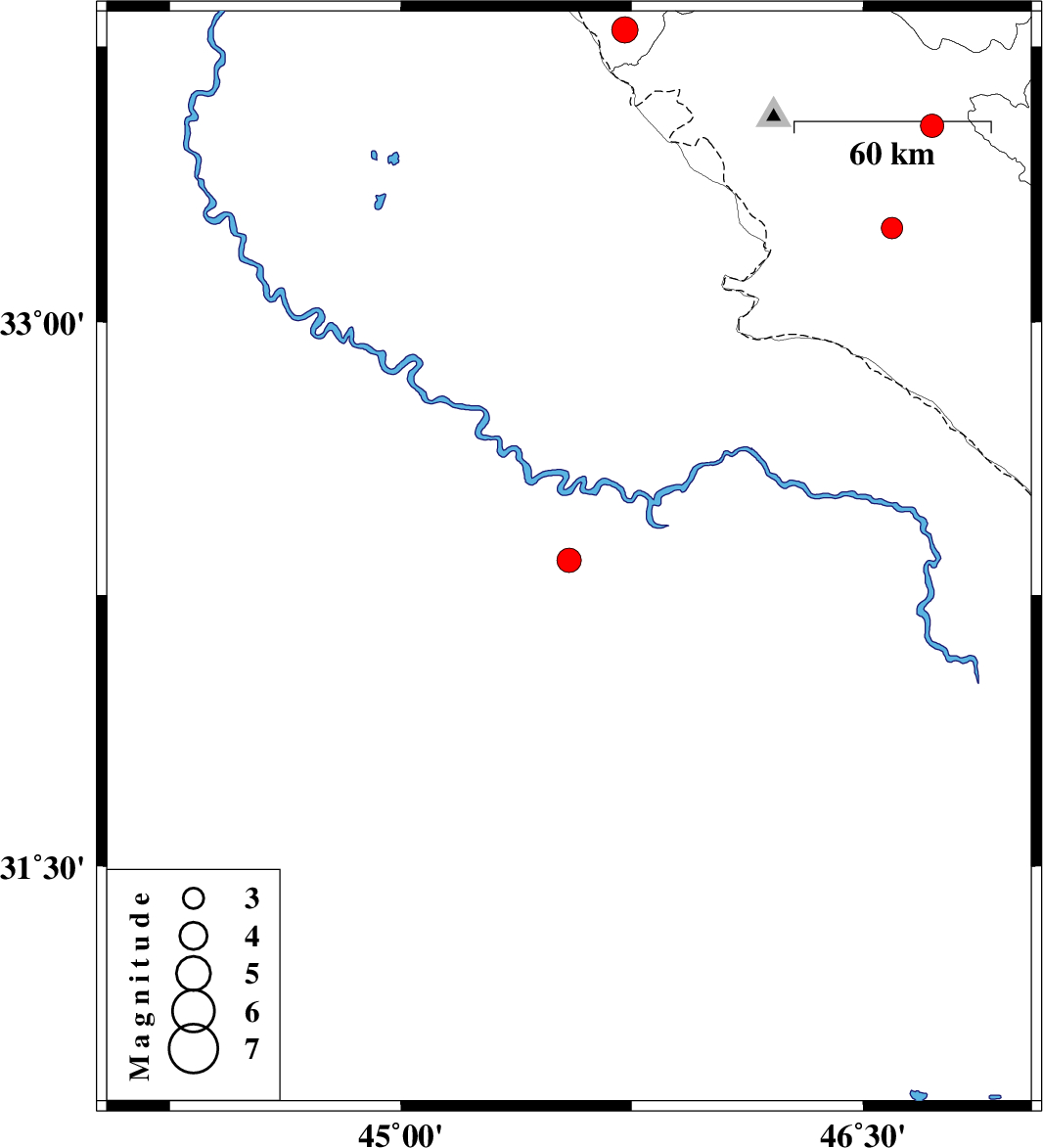 | 2023/04/01 | 15:09:10.4 | 18:39:10.4 | 32.346 | 45.546 | 16 | ML:3.5 | Iraq | ||