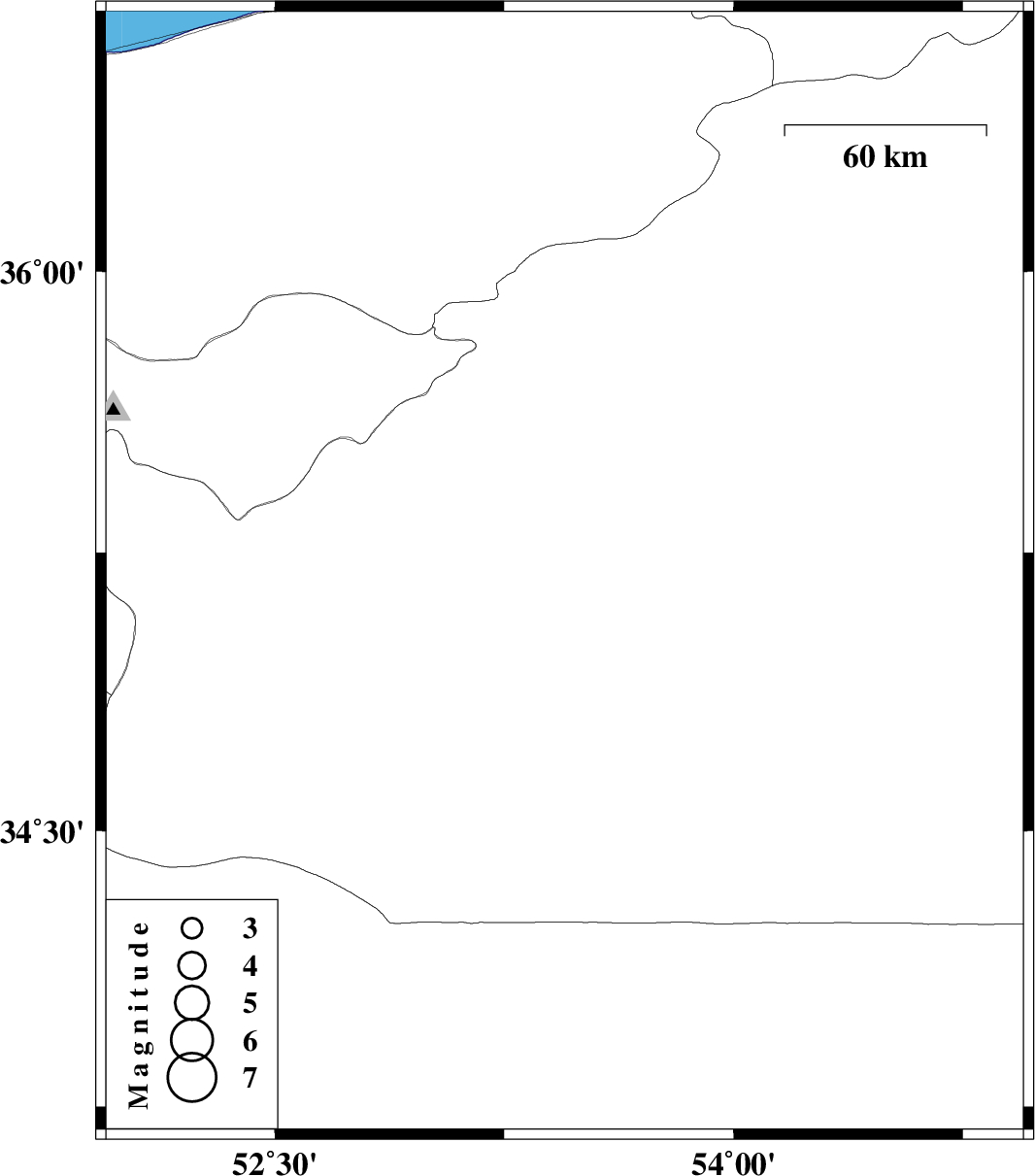 | 2023/04/07 | 03:12:28.6 | 06:42:28.6 | 35.189 | 53.448 | 12 | ML:3.3 | Semnan Province, 42 km South of Semnan |