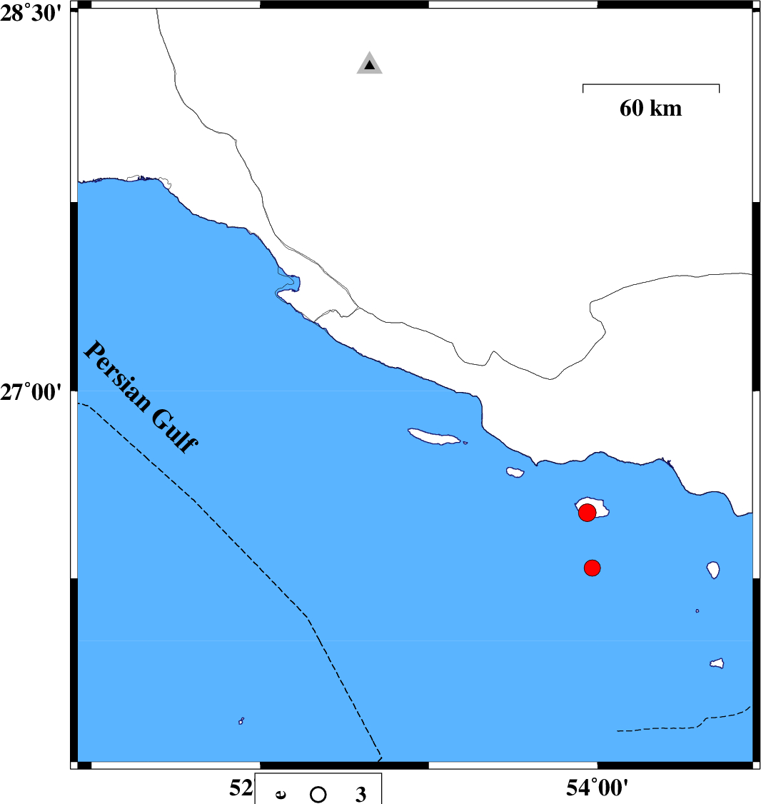 | 2023/04/11 | 21:04:06.8 | 00:34:06.8 | 27.014 | 53.189 | 12 | ML:3.3 | Persian Gulf, 36 km South of Lamerd | ||