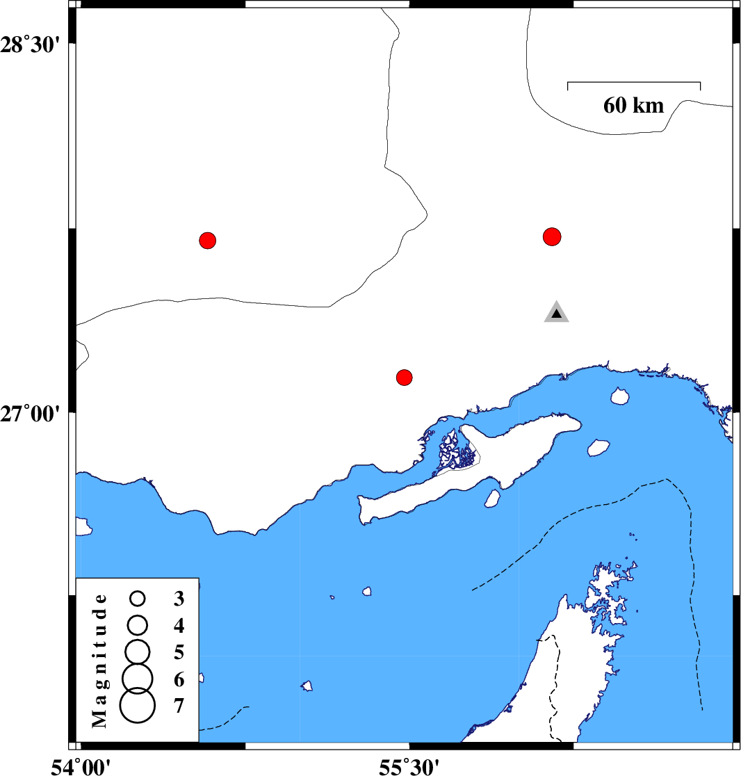 | 2023/04/23 | 22:06:07.1 | 01:36:07.1 | 27.143 | 55.476 | 18 | ML:3.2 | Hormozgan Province, 80 km -West of Bandar-e abbas | ||