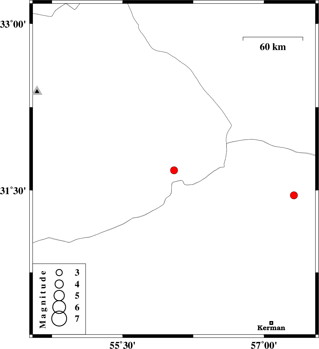| 2023/04/17 | 17:09:47.4 | 20:39:47.4 | 31.454 | 57.317 | 12 | ML:3.5 | Kerman Province, 52 km North-East of Ravar |