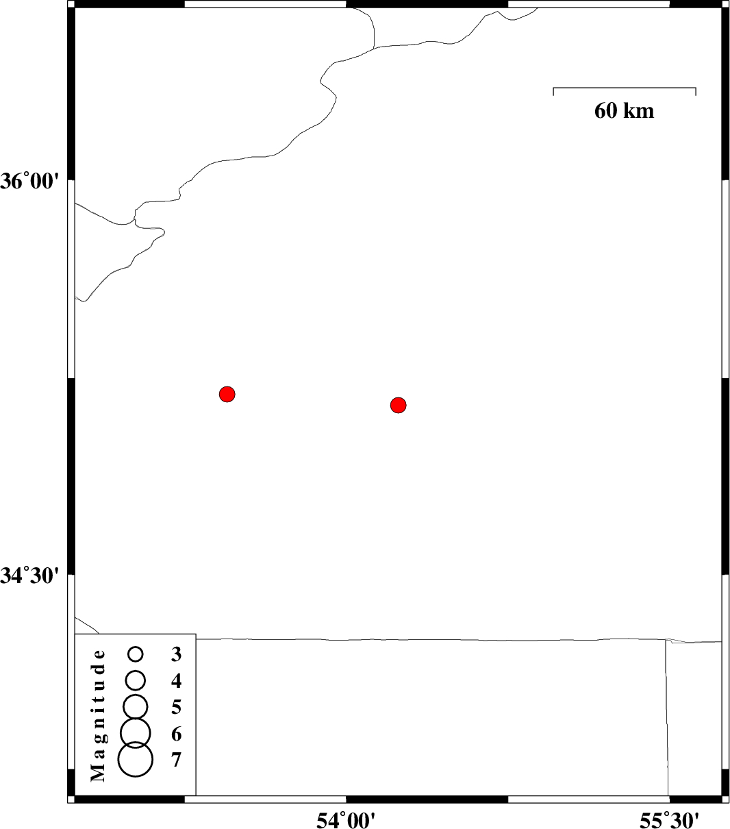 | 2023/05/02 | 02:21:38.3 | 05:51:38.3 | 35.147 | 54.241 | 7 | ML:3.2 | Semnan Province, 114 km South-West of Damghan | ||