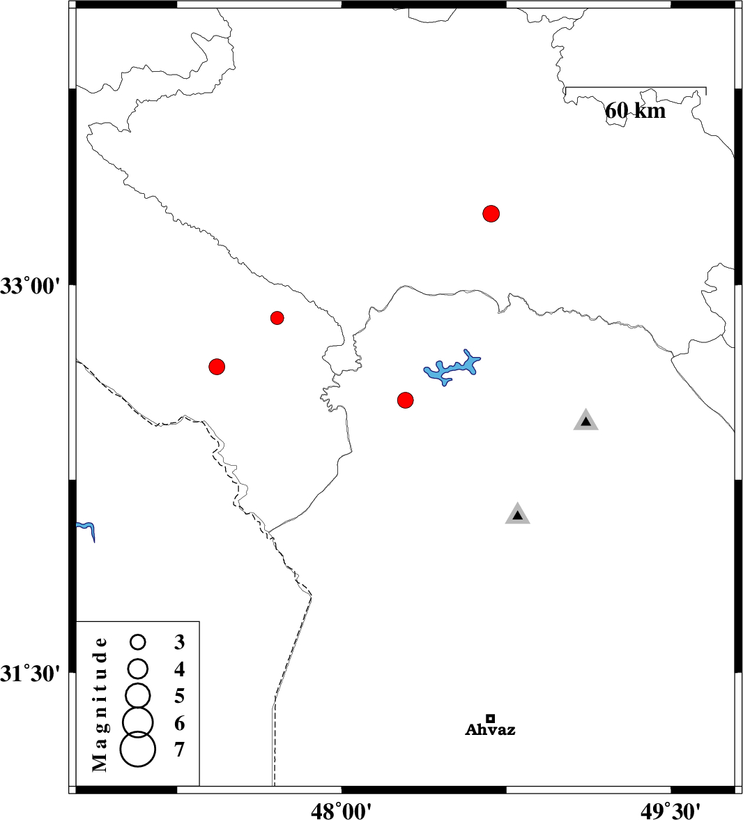 | 2023/04/20 | 11:29:22.2 | 14:59:22.2 | 32.874 | 47.706 | 12 | ML:2.7 | Ilam Province, 31 km South of Pol-e dokhtar |