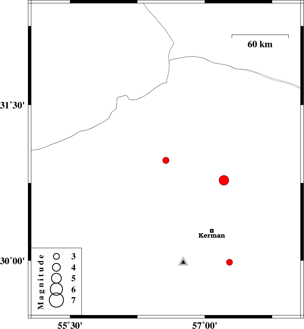 | 2022/03/19 | 08:50:00.4 | 12:20:00.4 | 29.983 | 57.276 | 12 | ML:3.1 | Kerman Province, 39 km South-East of Kerman |