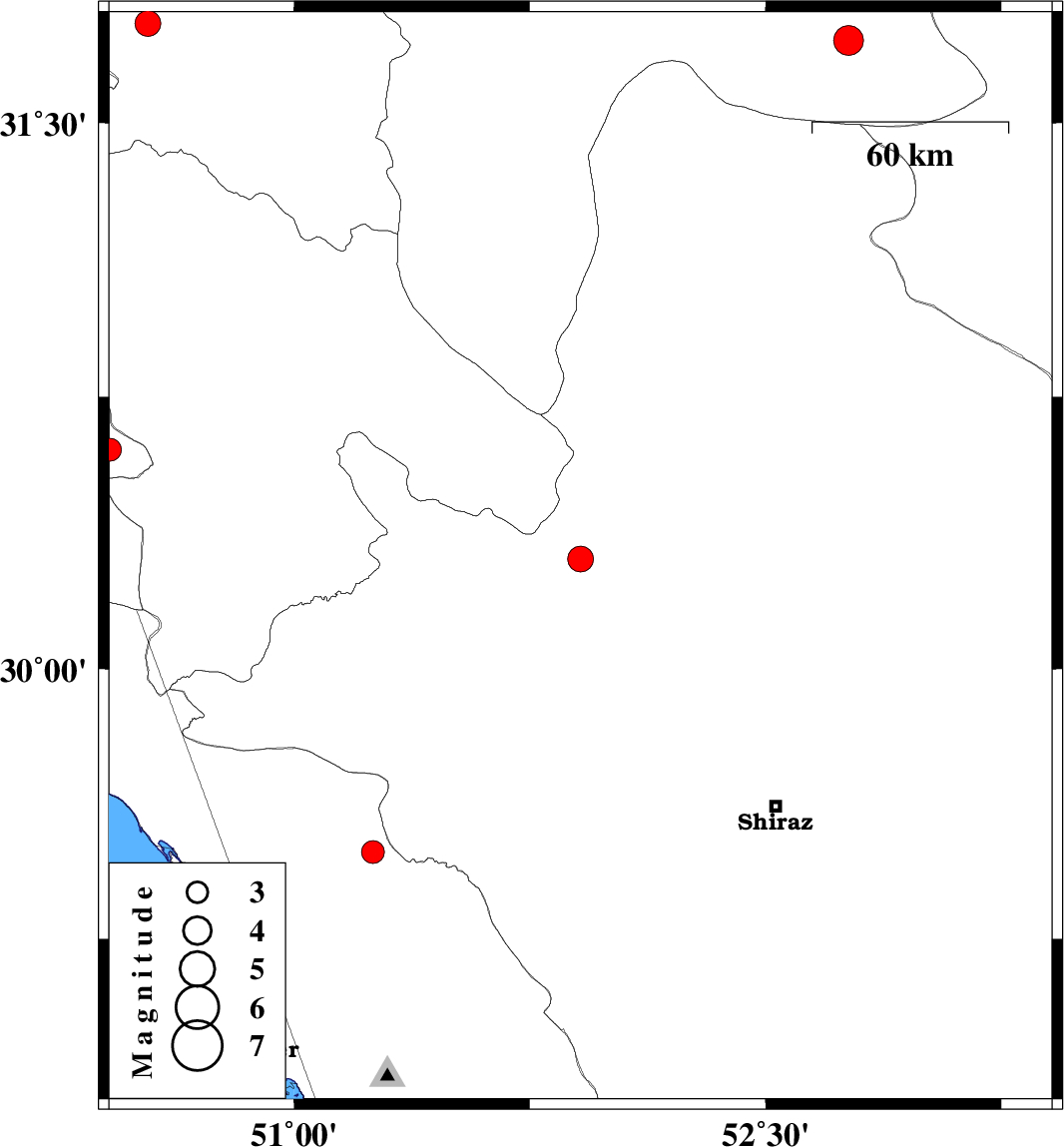 | 2023/05/14 | 07:41:46.4 | 11:11:46.4 | 30.303 | 51.911 | 8 | ML:3.7 | Fars Province, 9 km of Ardakan | ||