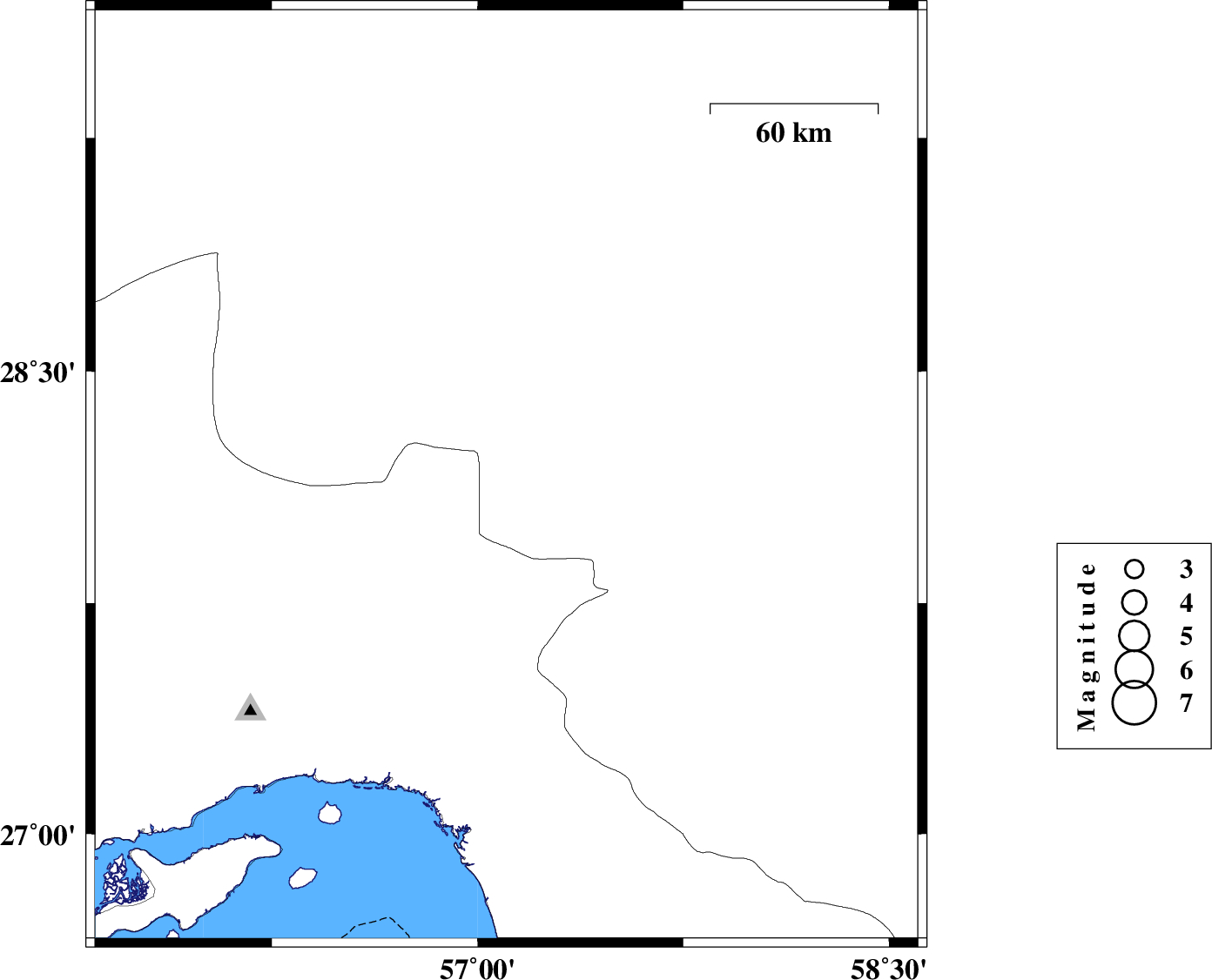 | 2023/04/30 | 06:16:12.5 | 09:46:12.5 | 27.609 | 57.32 | 10 | ML:3.4 | Kerman Province, 22 km North of Dehbarez | ||