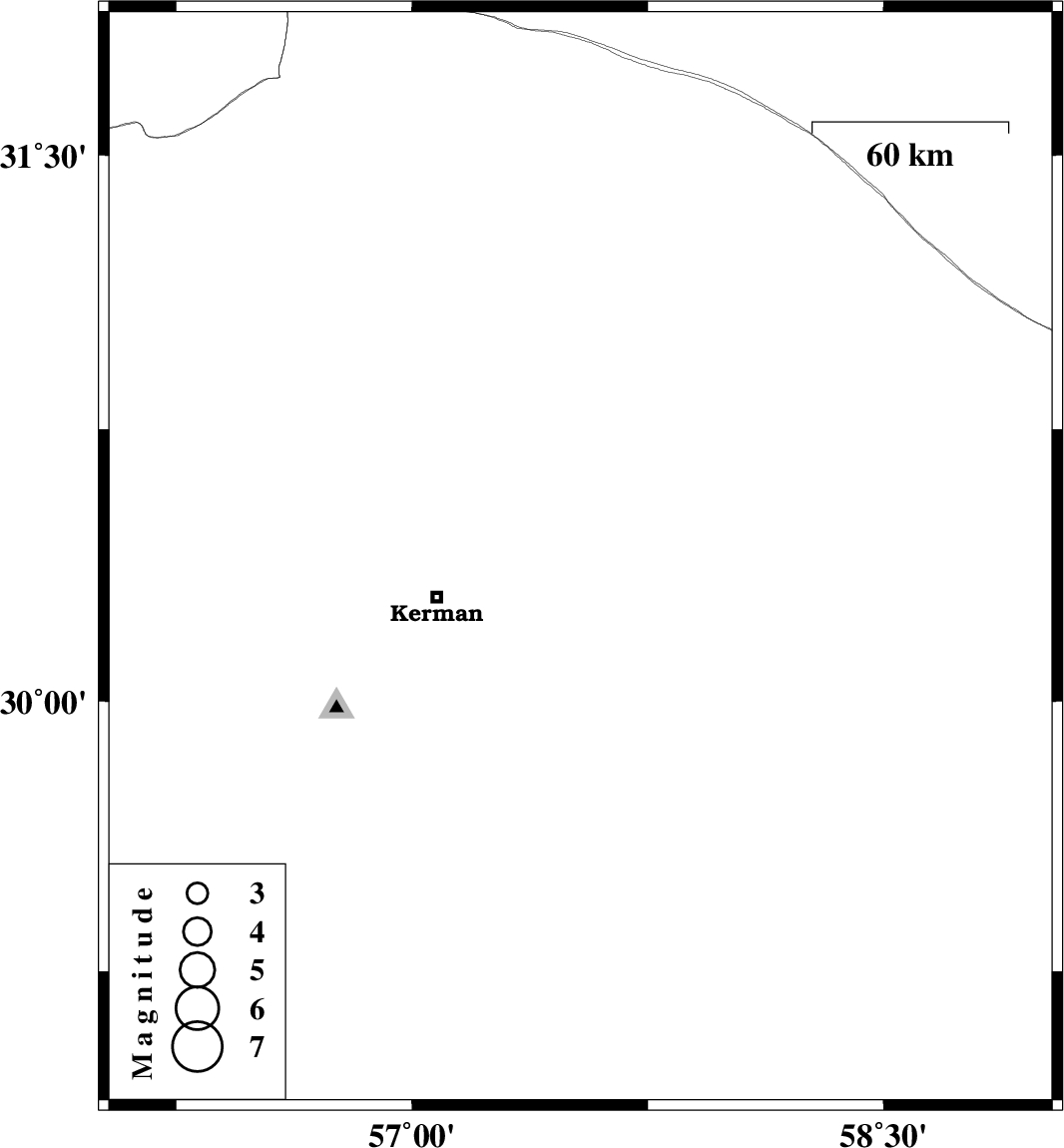 | 2023/05/18 | 13:48:57.1 | 17:18:57.1 | 30.391 | 57.536 | 8 | ML:3.8 | Kerman Province, 45 km North-East of Kerman |