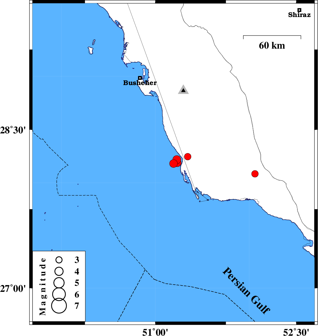 | 2023/05/27 | 08:25:28.8 | 11:55:28.8 | 28.218 | 51.228 | 10 | ML:3.9 | Persian Gulf, 50 km South-West of Khormog | ||