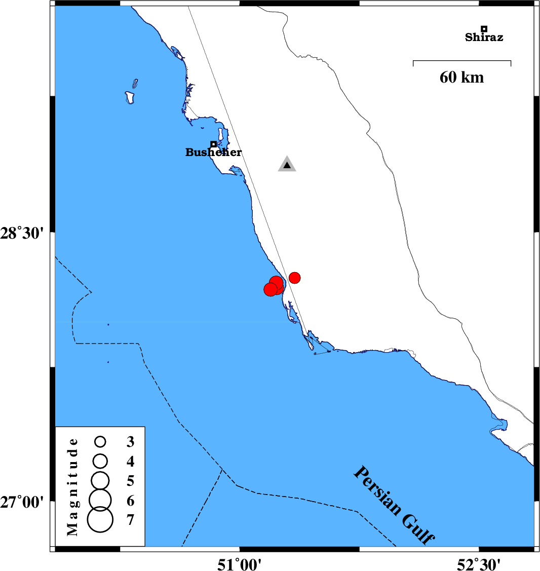 2023/05/27 08:25:28.8 11:55:28.8 28.21851.22810 ML:3.9 Persian Gulf, 50 km South-West of Khormog