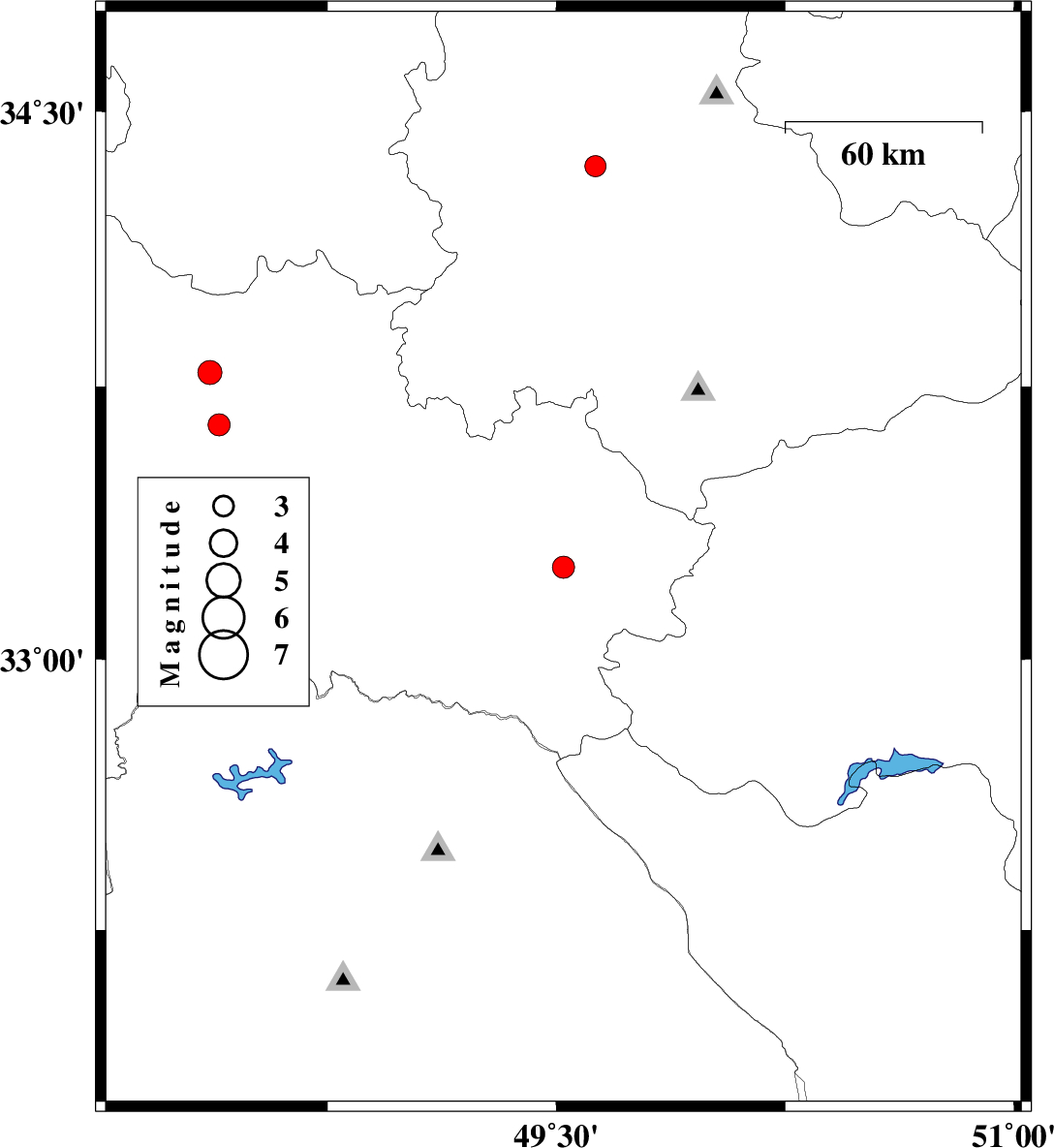 | 2023/06/04 | 16:22:10.1 | 19:52:10.1 | 32.701 | 48.26 | 12 | ML:3.5 | Khoozestan Province, 28 km North of Andimeshk | ||