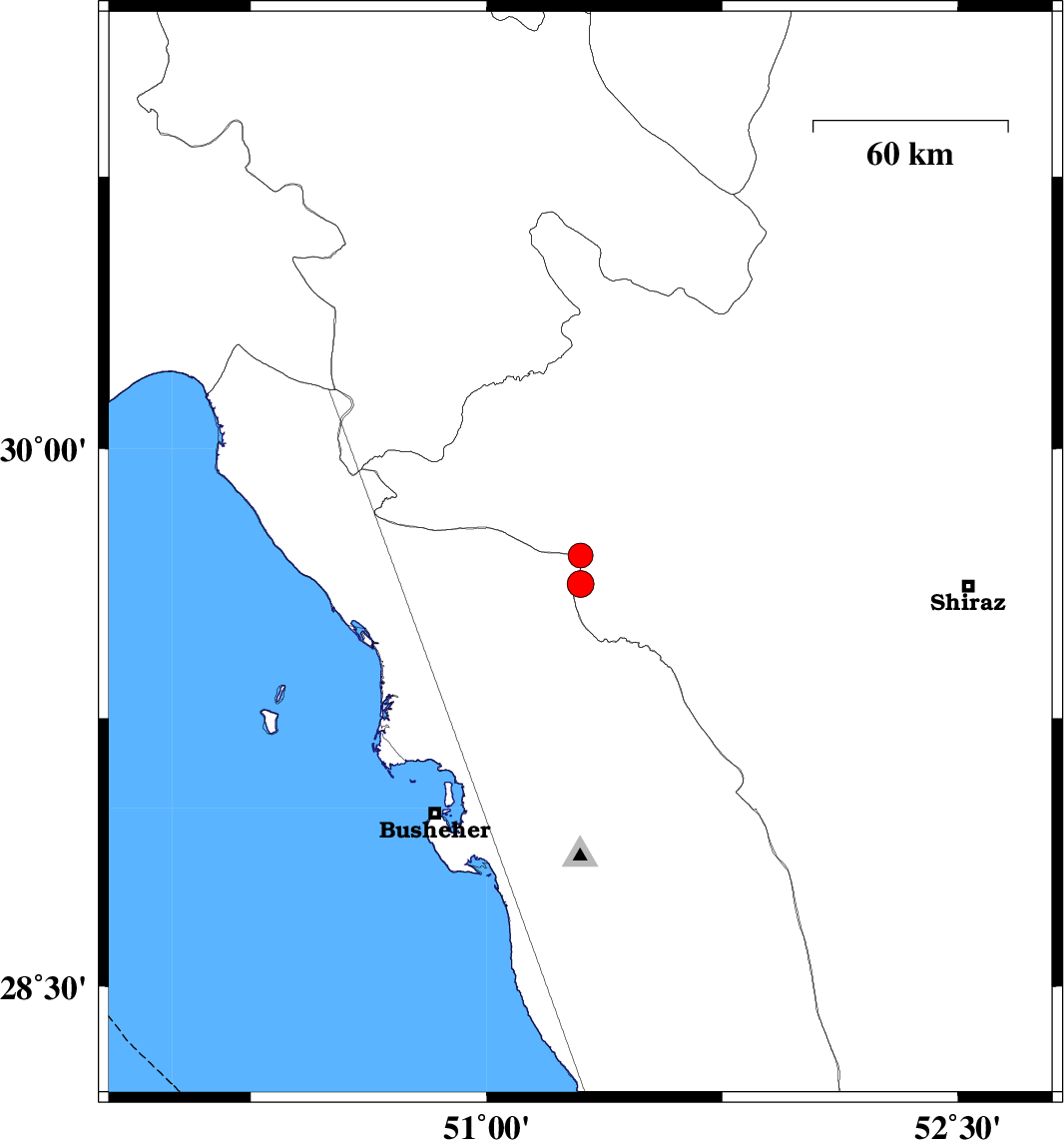 | 2023/06/05 | 10:19:21.9 | 13:49:21.9 | 29.704 | 51.299 | 10 | ML:3.5 | Fars Province, 36 km -West of Kazerun | ||