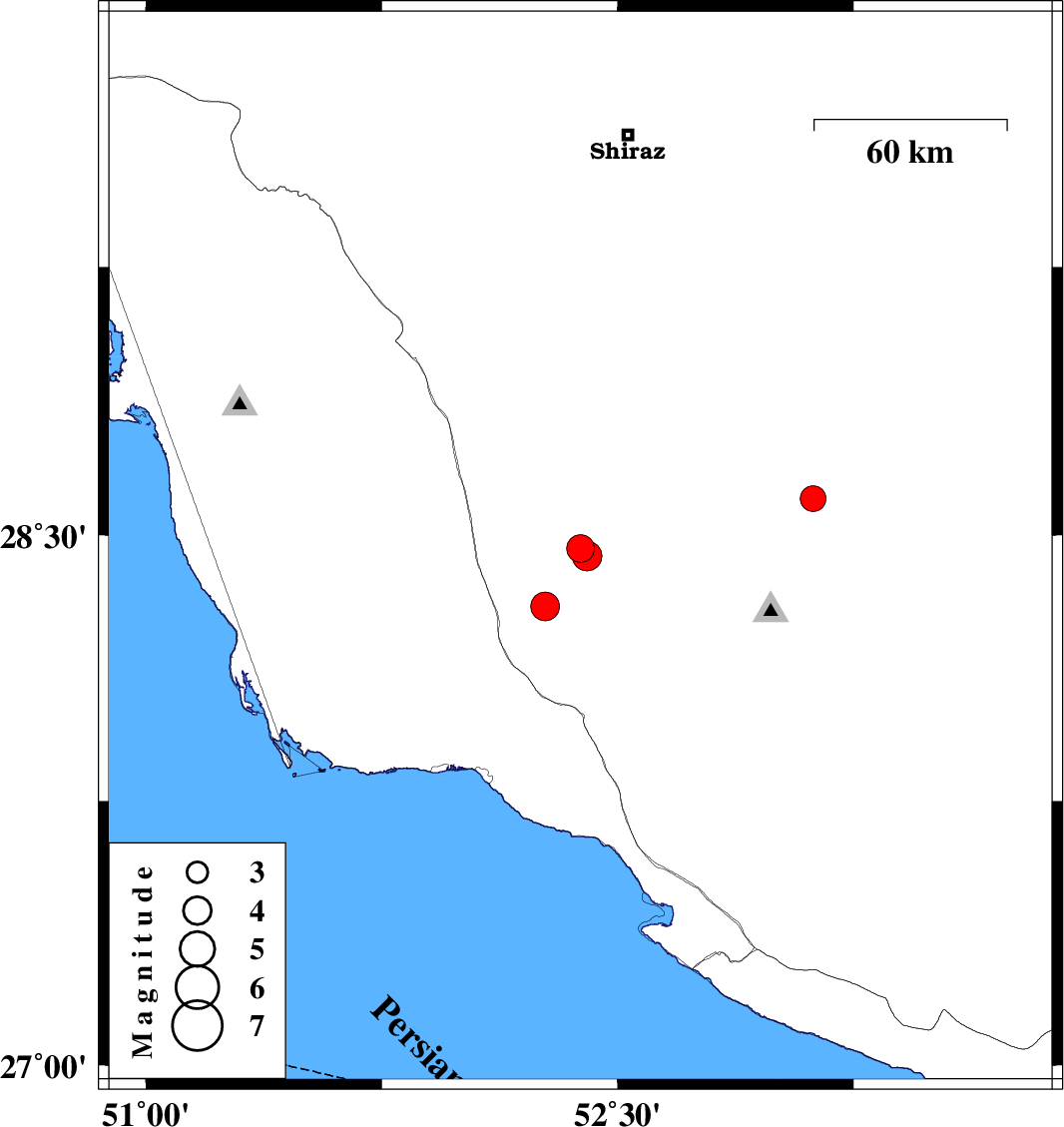 | 2023/06/15 | 17:30:02.2 | 21:00:02.2 | 28.462 | 52.382 | 10 | ML:4 | Fars Province, 46 km South-West of Firuz Abad | ||