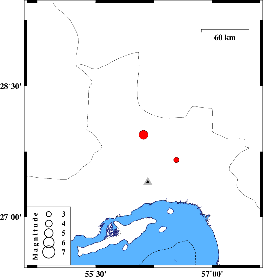 | 2023/06/15 | 17:09:31.4 | 20:39:31.4 | 27.654 | 56.538 | 12 | ML:3.1 | Hormozgan Province, 58 km North-East of Bandar-e abbas |