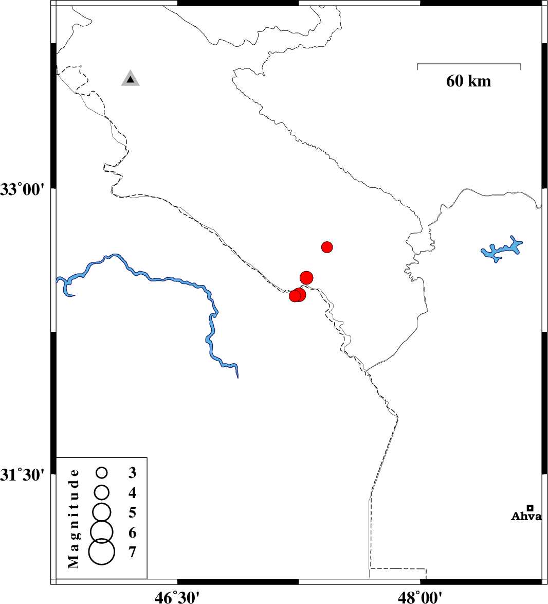 2023/06/27 17:57:21.4 21:27:21.4 32.44447.25112 ML:3.8 , 28 km South of Dehloran