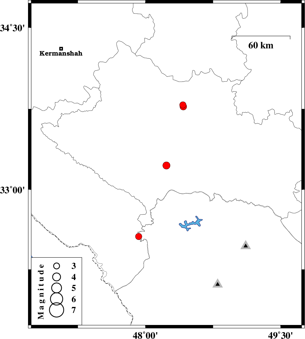 | 2023/07/20 | 22:32:33.6 | 02:02:33.6 | 33.224 | 48.233 | 12 | ML:3.6 | Lorestan Province, 31 km South-West of Khorramabad | ||