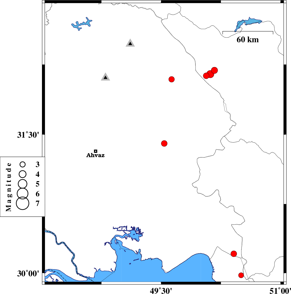| 2023/07/05 | 18:19:59.9 | 21:49:59.9 | 30.209 | 50.412 | 12 | ML:3.4 | Khoozestan Province, 39 km South-West of Dogonbadan |