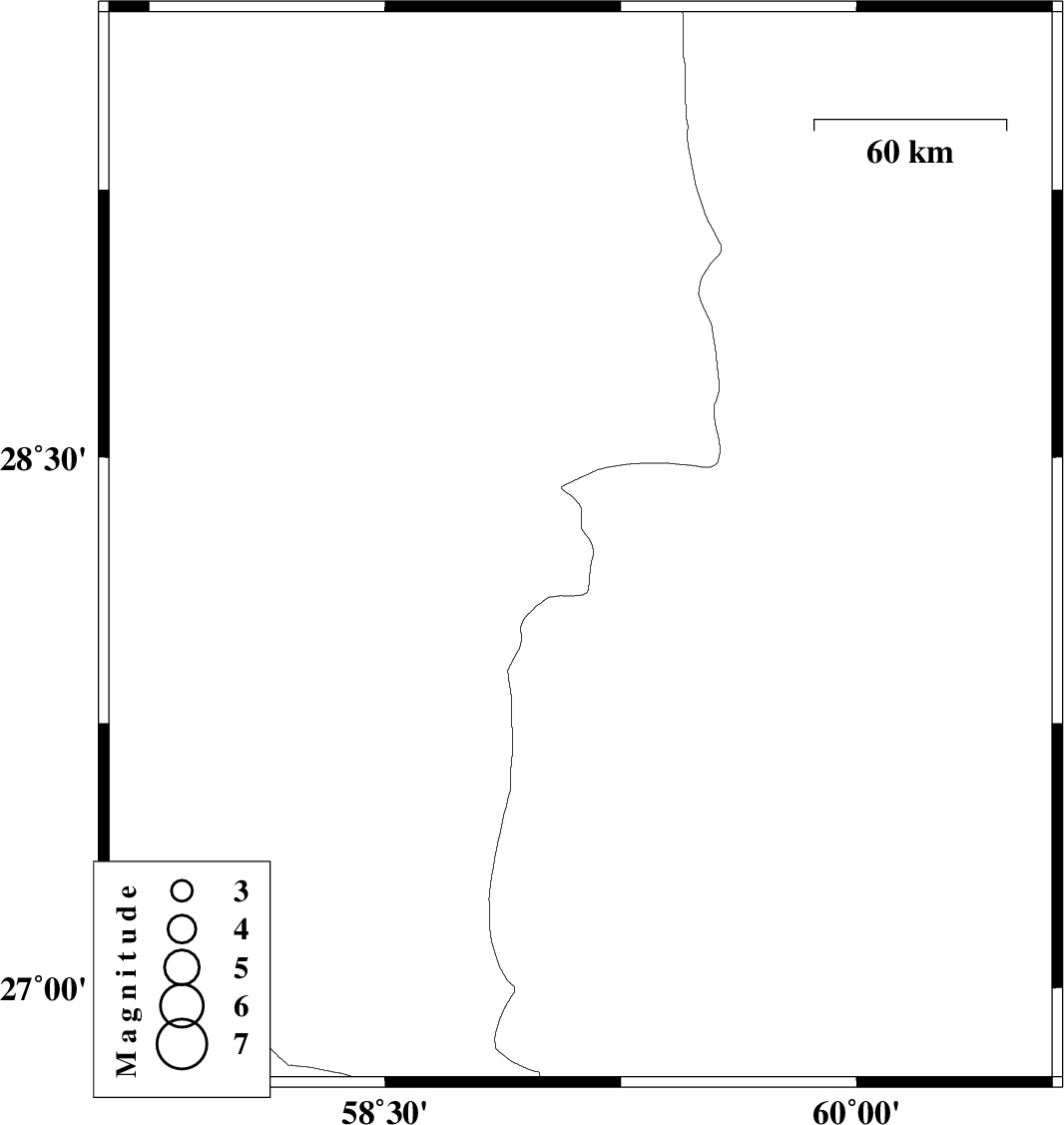 | 2023/07/25 | 02:41:02.5 | 06:11:02.5 | 28.305 | 59.171 | 8 | ML:3.1 | Sistan va Baloochestan Province, 120 km South-East of Bam | ||