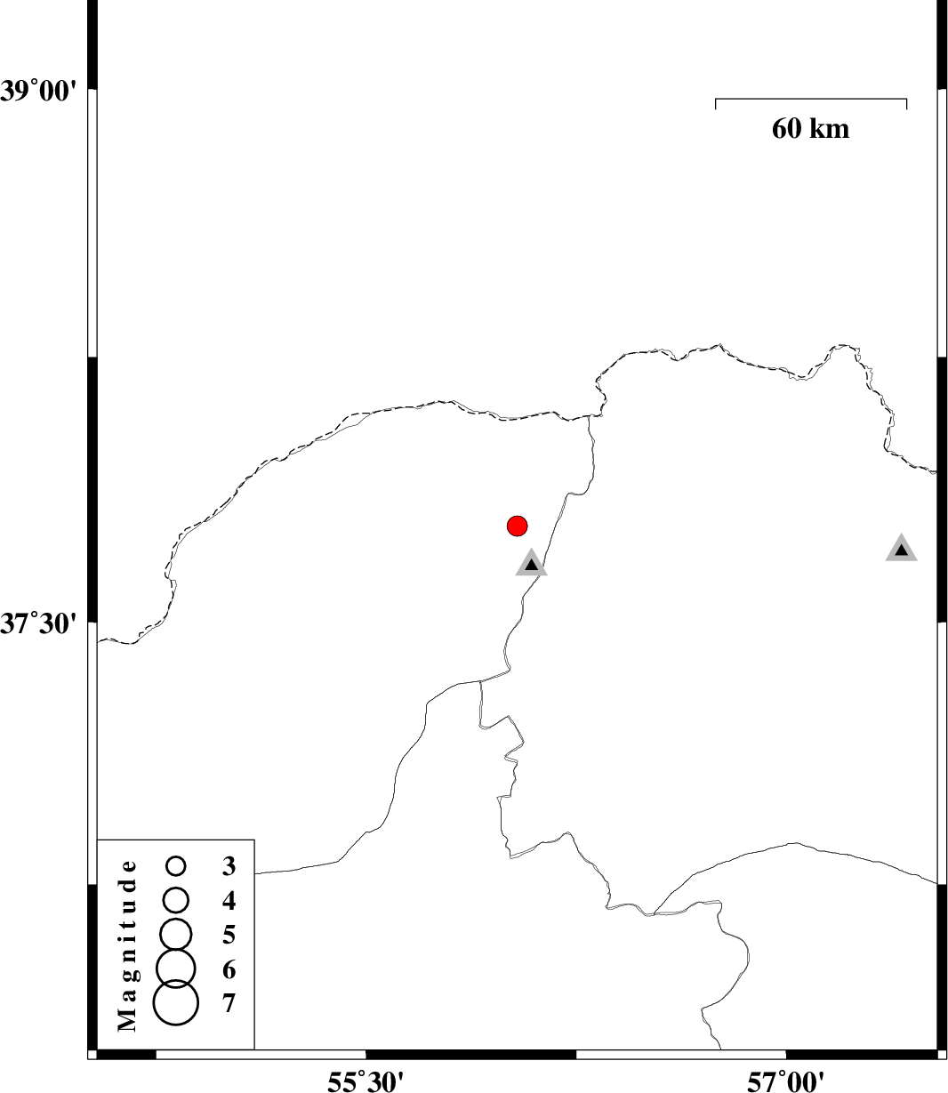 | 2023/07/26 | 20:05:12.6 | 23:35:12.6 | 37.773 | 56.039 | 10 | ML:3.2 | Golestan Province, 65 km North-East of Kalaleh | ||