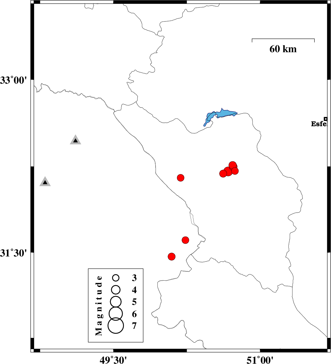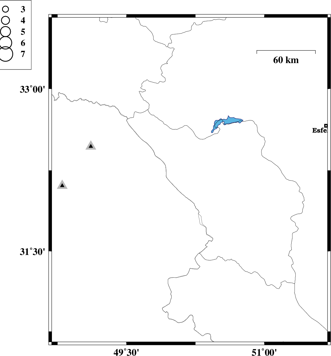 | 2023/08/02 | 10:33:13.1 | 14:03:13.1 | 32.202 | 50.163 | 12 | ML:3.5 | Chaharmahal Bakhtiari Province, 30 km South of Chelgard | ||