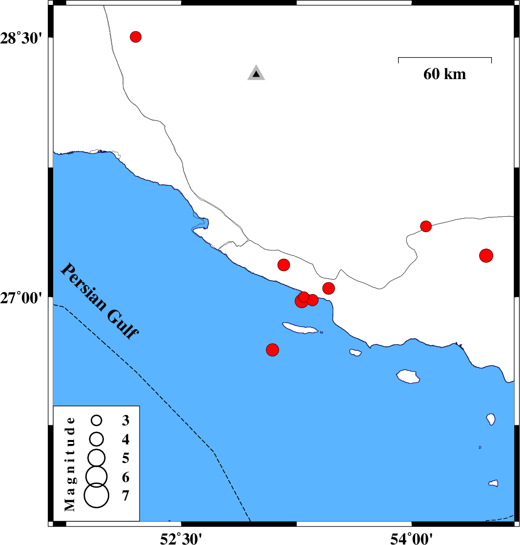 | 2023/07/30 | 11:45:52.1 | 15:15:52.1 | 27 | 53.297 | 10 | ML:3.1 | Persian Gulf, 39 km South-East of Lamerd | ||