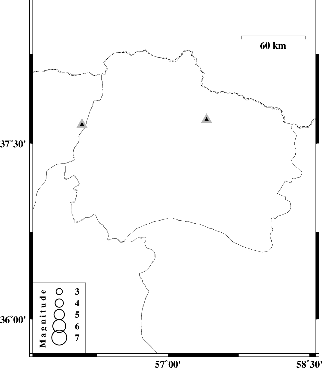 | 2023/08/08 | 07:35:09.0 | 11:05:09.0 | 37.204 | 57.067 | 9 | ML:3.6 | Khorasan(north) Province, 40 km South-East of Ashkhaneh |