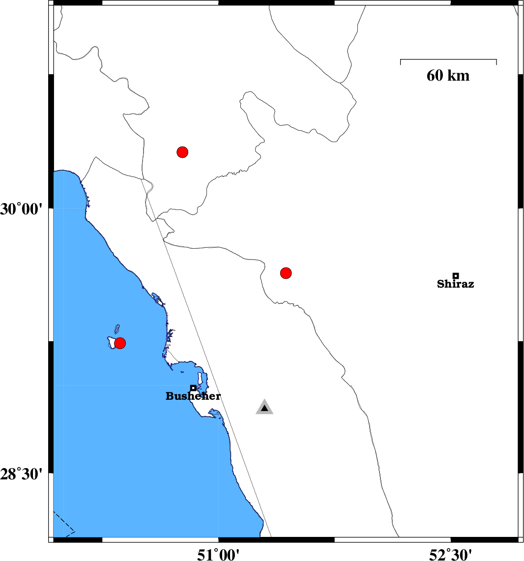 | 2023/08/02 | 14:52:46.7 | 18:22:46.7 | 29.239 | 50.363 | 12 | ML:3.3 | Persian Gulf, 40 km South-West of Bandar-e genaveh |