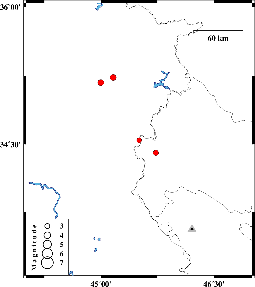 | 2023/08/06 | 03:17:06.5 | 06:47:06.5 | 34.543 | 45.508 | 12 | ML:3 | Iraq, 8 km of Qasr-E-Shirin | ||