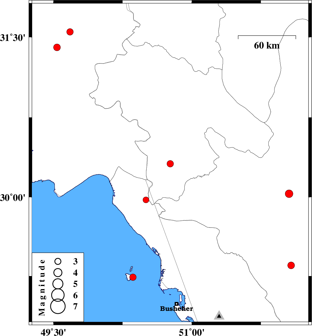 | 2023/07/16 | 12:07:02.7 | 15:37:02.7 | 29.974 | 50.504 | 12 | ML:3 | Khoozestan Province, 44 km North of Bandar-e genaveh |