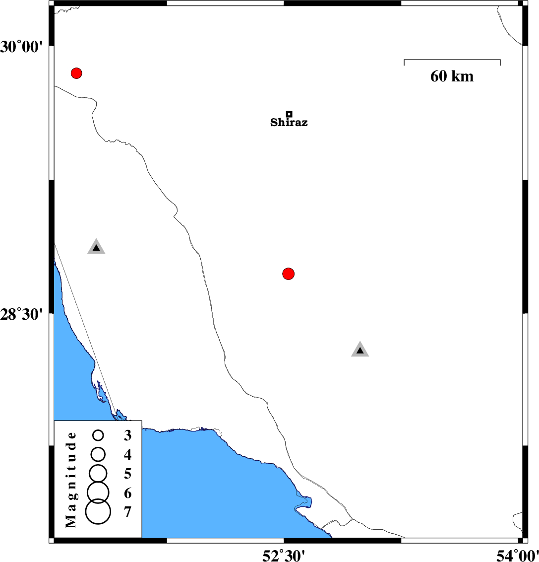 | 2023/08/15 | 14:46:13.2 | 18:16:13.2 | 29.847 | 51.171 | 12 | ML:3.1 | Fars Province, 45 km South-West of Nurabad |
