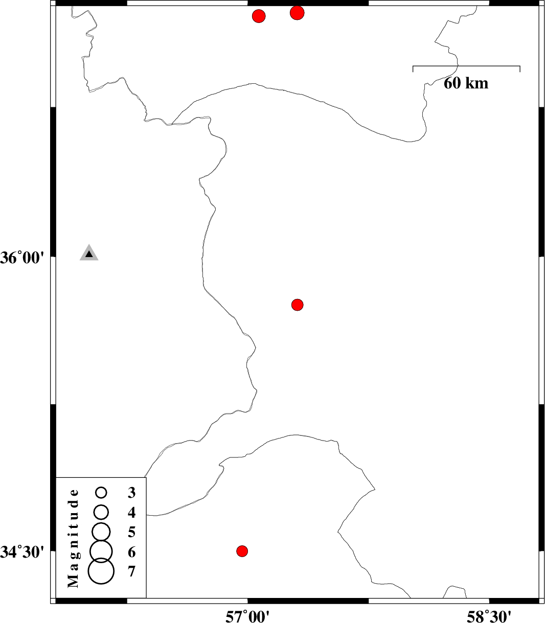 | 2023/08/22 | 06:16:32.4 | 09:46:32.4 | 35.756 | 57.307 | 9 | ML:3.2 | Khorasan(center) Province, 60 km South-West of Sabzevar | ||