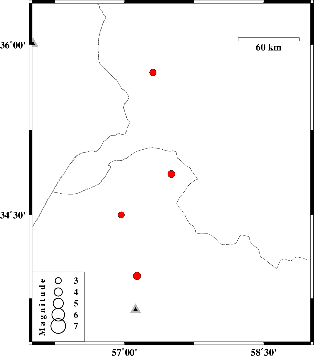 | 2023/08/22 | 06:16:32.4 | 09:46:32.4 | 35.756 | 57.307 | 9 | ML:3.2 | Khorasan(center) Province, 60 km South-West of Sabzevar | ||
