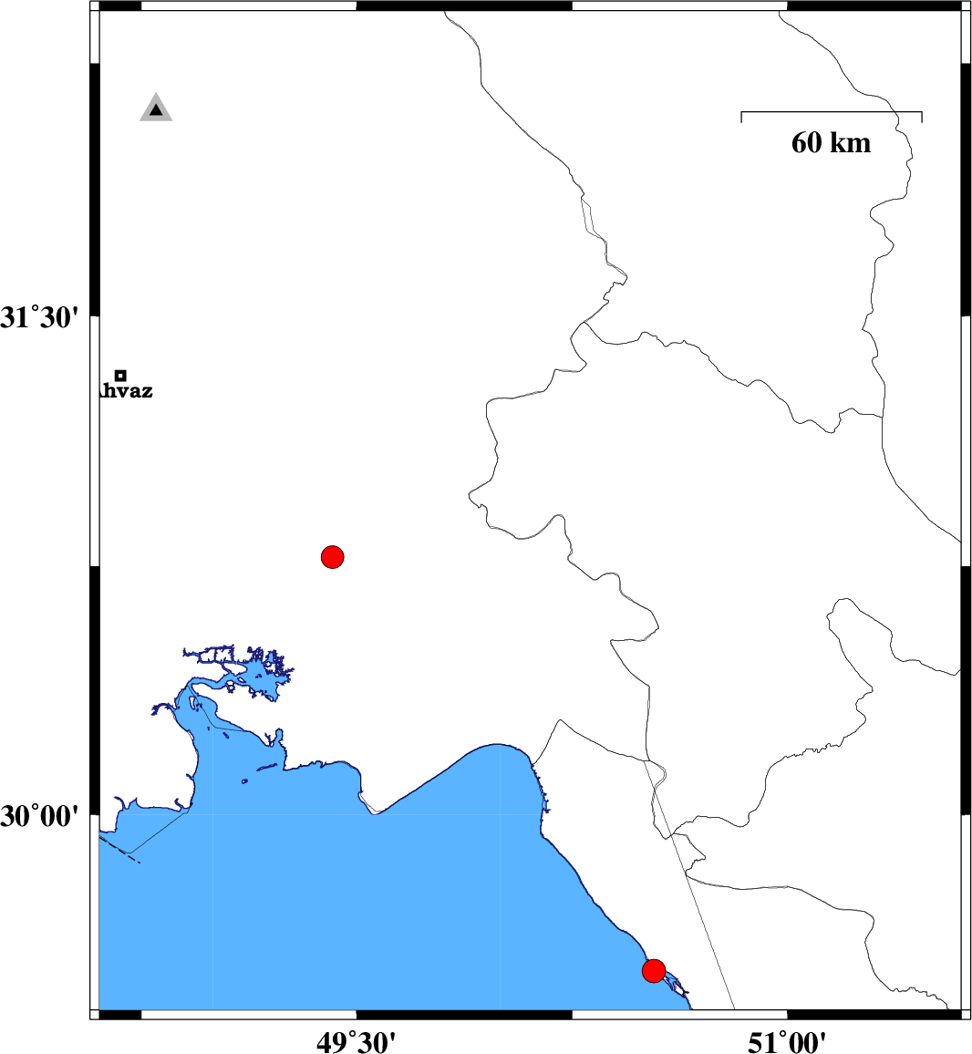 | 2023/09/01 | 06:55:05.0 | 10:25:05.0 | 32.142 | 48.985 | 9 | ML:3.5 | Khoozestan Province, 17 km North-East of Shushtar | ||